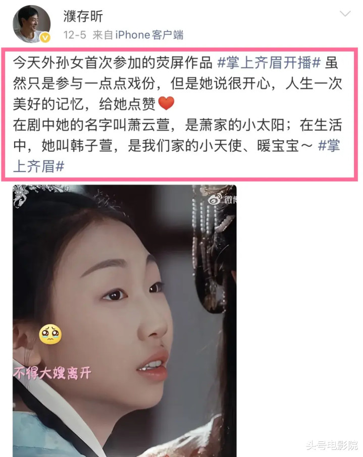 字里行间,满溢着濮存昕作为外公的骄傲:“在剧中她是萧家的小太阳,在现实生活中她更是我们家中的小天使、暖宝宝。”