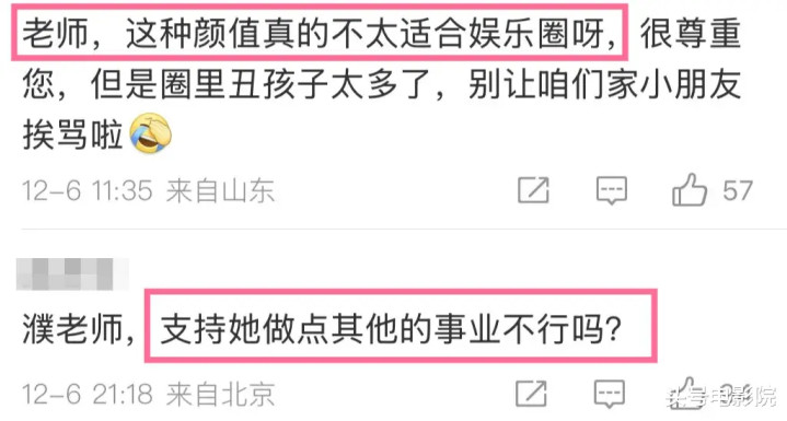 有人“好心”劝告:“老师,这种颜值不太适合娱乐圈呀……别让咱们家小朋友挨骂啦!”